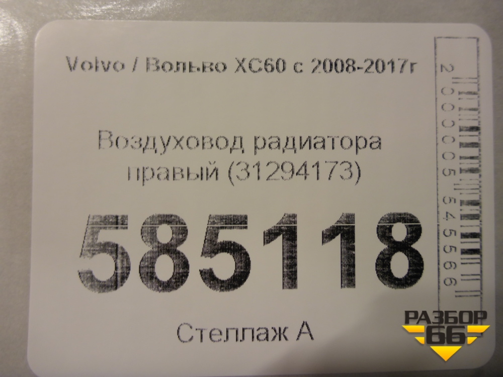 Воздуховод радиатора правый (31294173) для Volvo XC60 с 2008-2017г (ХС60) в Тюмени