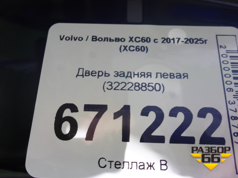 Дверь задняя левая (32228850) для Volvo XC60 с 2017-2025г (ХС60) в Тюмени