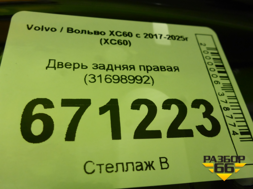 Дверь задняя правая (31698992) для Volvo XC60 с 2017-2025г (ХС60) в Тюмени